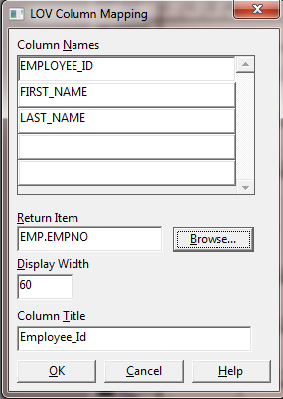 6. Give the title what you would like to display in LOV window. Also select width, height and position of the LOV window.